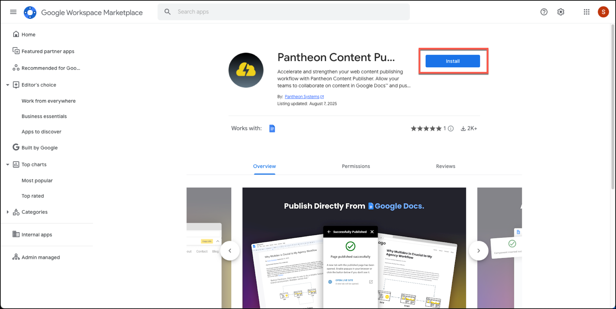 - Go to this page in the Google Workspace Marketplace. Click “Install.”