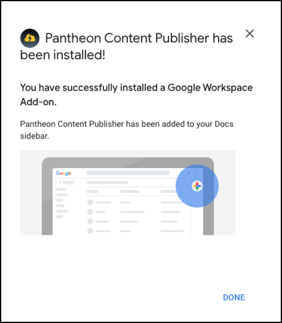 - Google will provide a summary of the permissions being requested by the Pantheon Content Publisher Add-on.