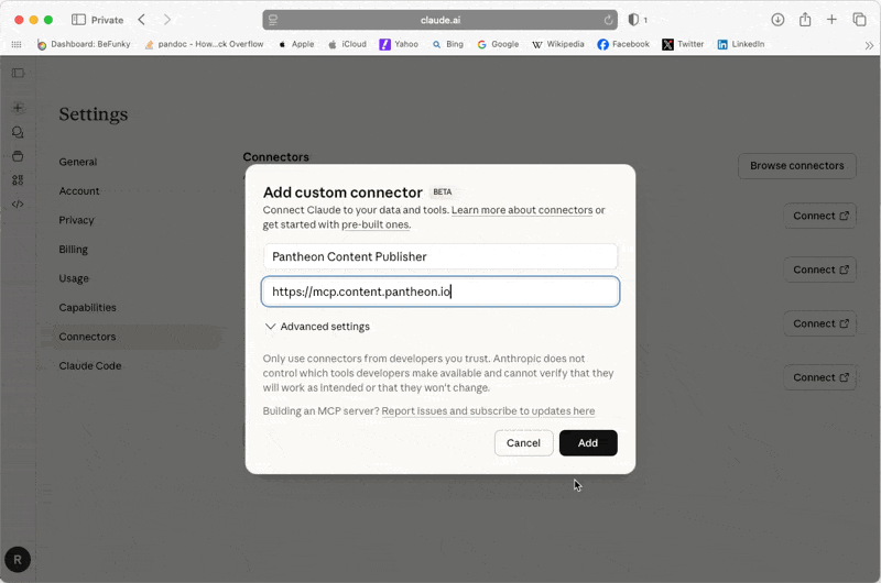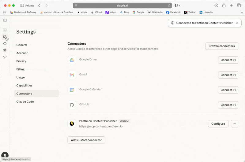 5. You should now see Pantheon Content Publisher in the list of Claude Connectors.