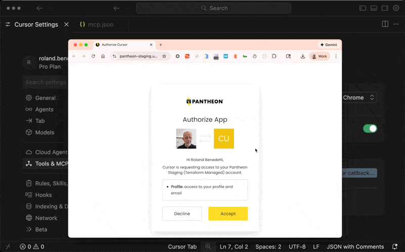 5. Back on the Tools & MCP screen, click Connect to authorize the Pantheon Content Publisher app.