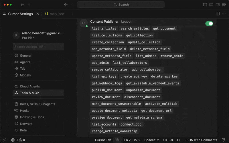 We have initially tested the Content Publisher MCP server with Claude and Cursor. See below the setup process for these as examples.