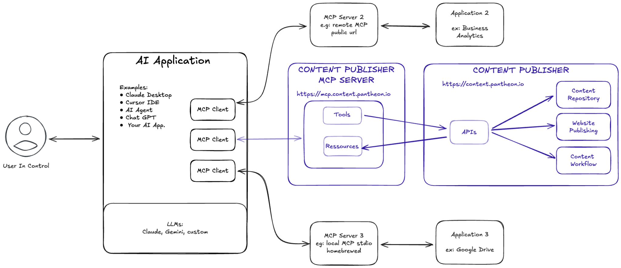 The MCP Server is hosted at https://mcp.content.pantheon.io This remote deployment model ensures your AI assistants always have access to the latest tools and features, without the friction of running a local server or manual updates.