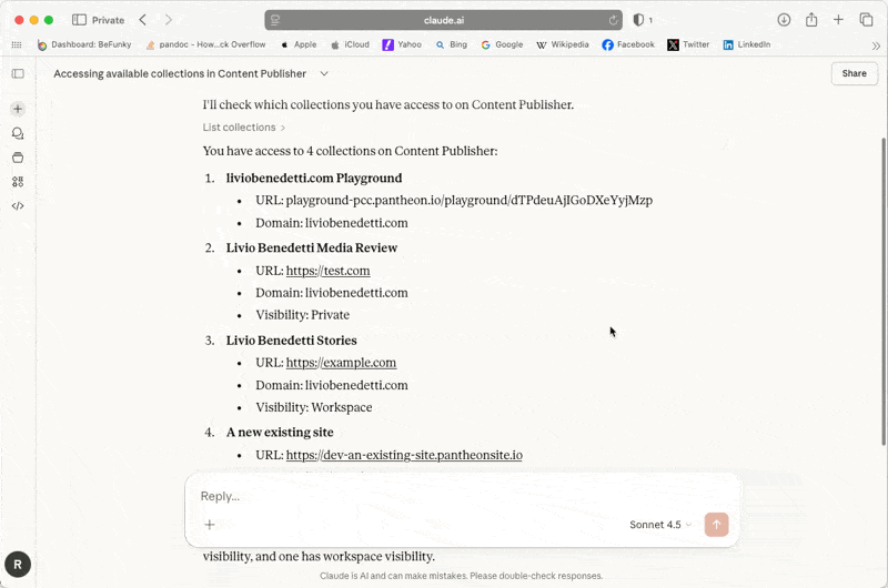 6. You can test to see that it’s working by asking Claude about its Content Publisher capabilities.